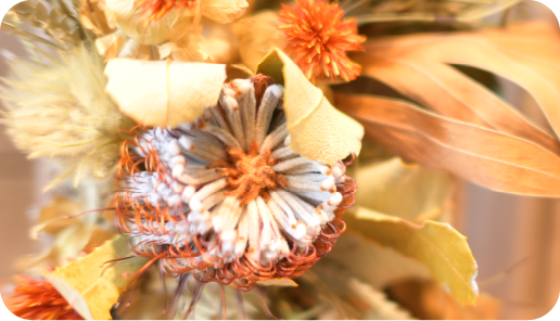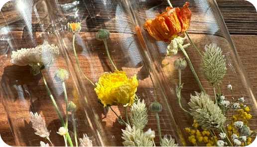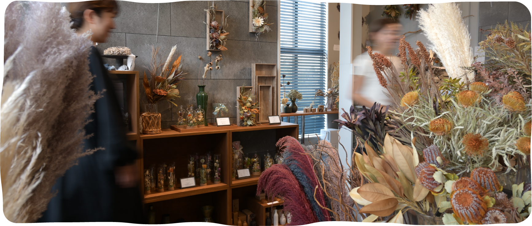 • 自分たちの手で生花から1本1本丁寧に加工している自慢のドライフラワーです。
