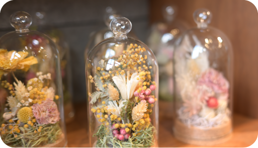 ガラスの中に広がるドライフラワー小さな世界に癒される。 あさなゆうな人気NO1アイテム。