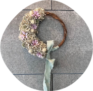 『永遠』の意味を持つリースを旬のお花でお届け。結婚祝いや新築のお祝いに人気のアイテム。